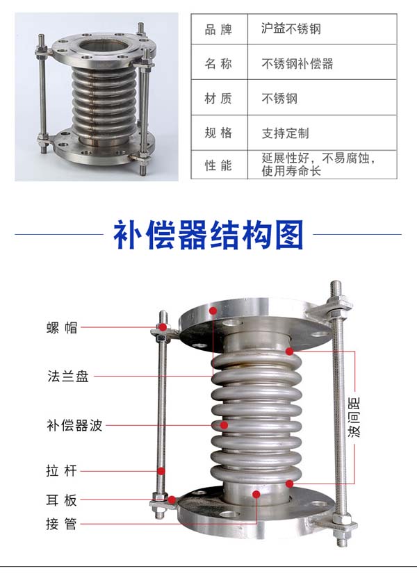 波紋補(bǔ)償器是用以利用波紋補(bǔ)償器的彈性元件的有效伸縮變形來(lái)吸收管線、導(dǎo)管或容器由熱脹冷縮等原因而產(chǎn)生的尺寸變化的一種補(bǔ)償裝置,屬于一種補(bǔ)償元件。可對(duì)軸向,橫向,和角向位移的的吸收。